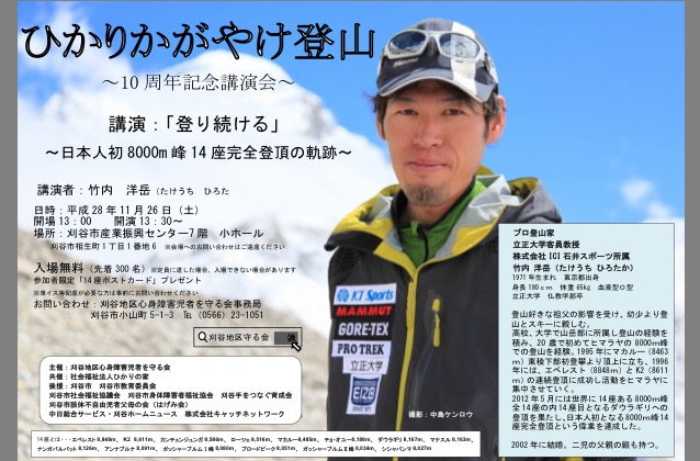講演:「登り続ける~日本人初8000m峰14座完全登頂の軌跡~」